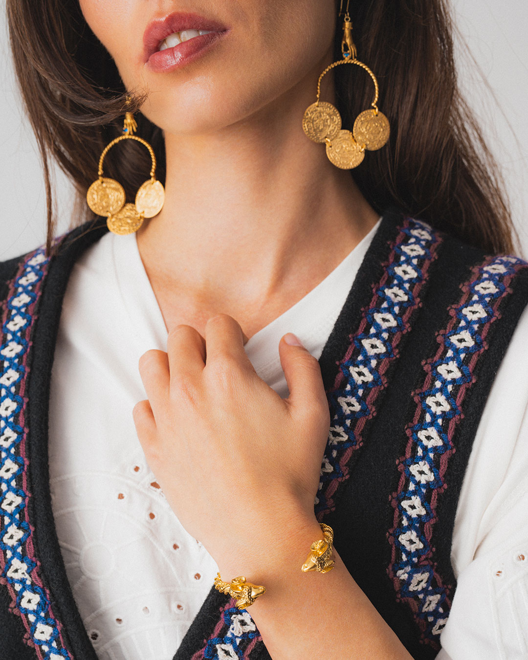 Echoing the charm of ancient coins, this collection brings history and elegance together. Each piece, adorned with golden medallions, symbolizes prosperity, strength, and timeless beauty. A tribute to the past, designed for those who carry their own story into the future.