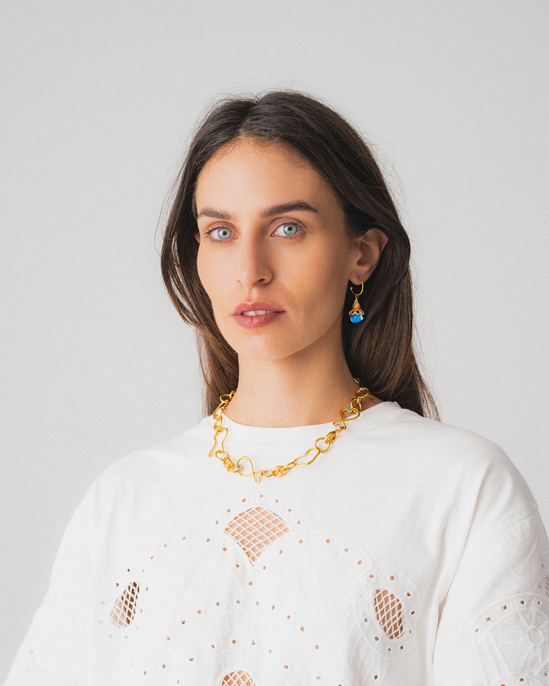 A unique pair of earrings handmade inspred by old Byzantine button and evil eye for protection